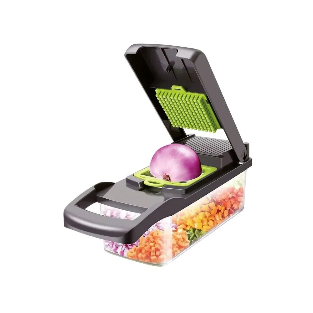 Transforme o preparo de refeições em uma tarefa rápida, segura e divertida! Este fatiador de legumes multifuncional oferece 5 lâminas em aço inox de alta qualidade para cortar, fatiar, ralar e julienar vegetais com uniformidade profissional. Perfeito para saladas, sopas, gratinados e aperitivos, ele elimina o risco de cortes nas mãos e reduz o tempo na cozinha. Compacto, fácil de usar e limpar, é ideal para uso doméstico ou profissional!