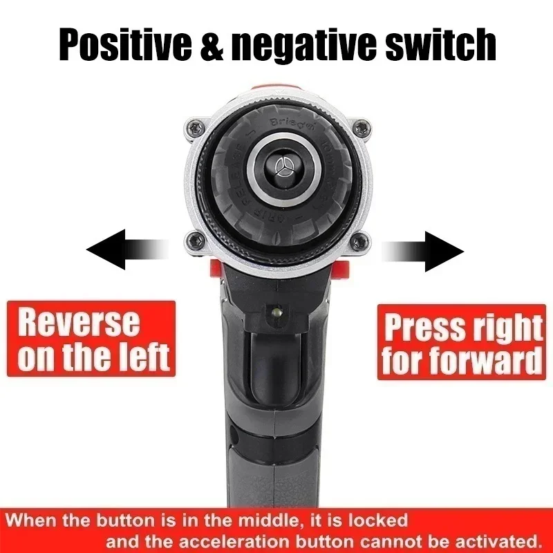 -Interruptor de gatilho 3 em 1, permite alternar a direção para frente/reversa e o travamento seguro rapidamente.