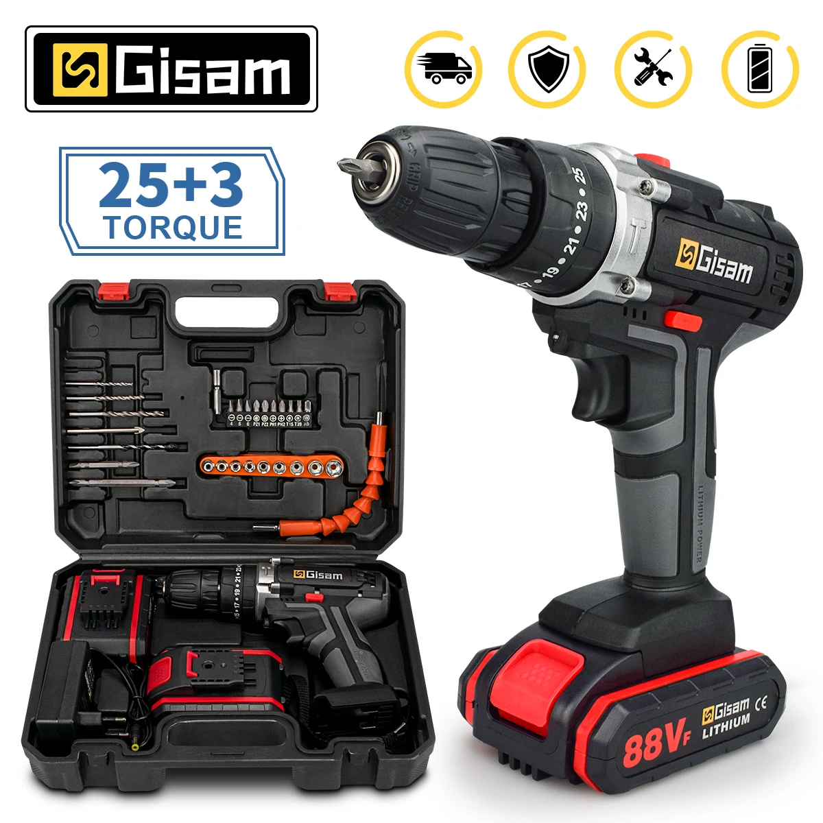 -Controle de 25 + 3 embreagens, oferece 25 configurações de torque e modos de perfuração para diversas aplicações.