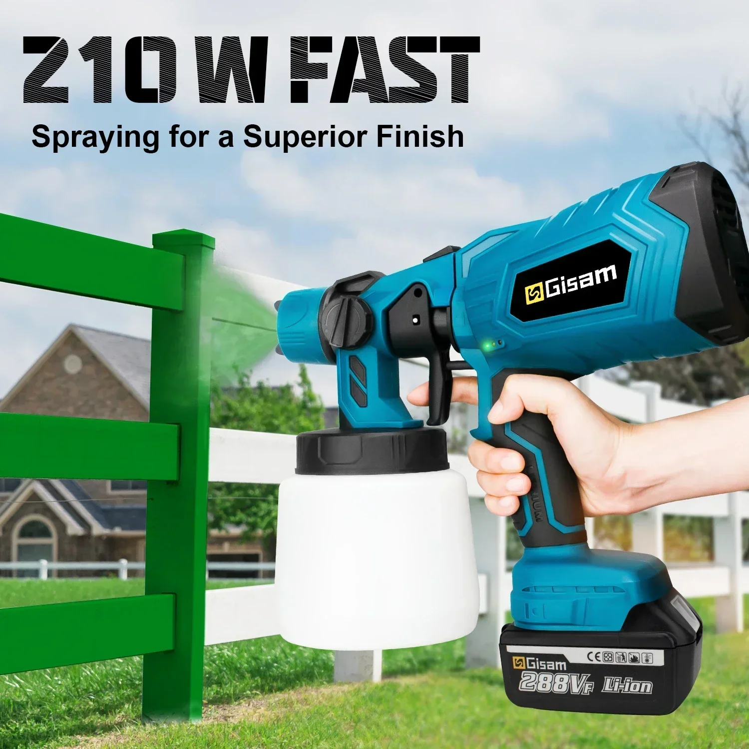O pulverizador de tinta de 210 Watts fornece um padrão de pulverização preciso, criando um acabamento suave e superior.Com recipiente de alta capacidade de 800ml, será o seu melhor pulverizador de tinta elétrico para cercas, decks, tetos, mesas, cadeiras e paredes externas internas de casas