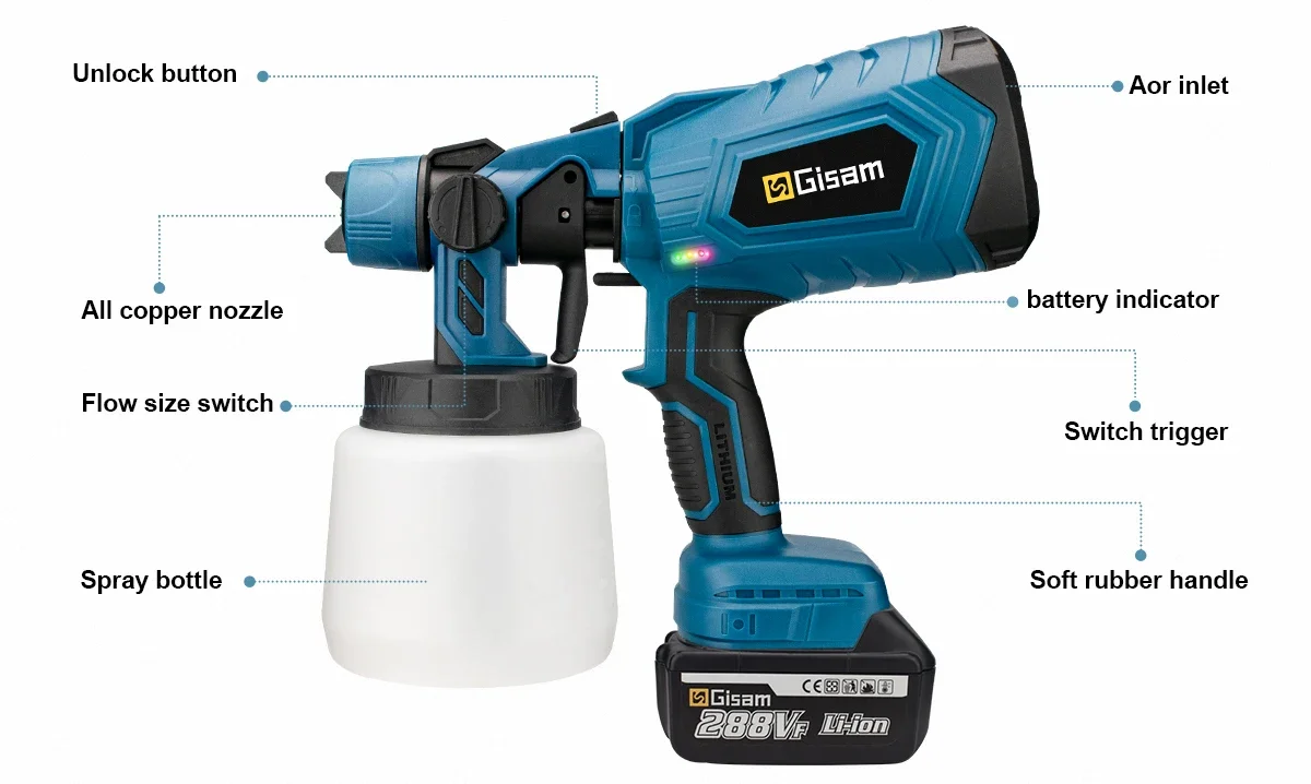 Fácil de usar e lavar – Este pulverizador de tinta é fácil de usar, fácil de montar e fácil pulverização. Com acessórios de limpeza embalados, você pode limpá-lo com facilidade e eficiência