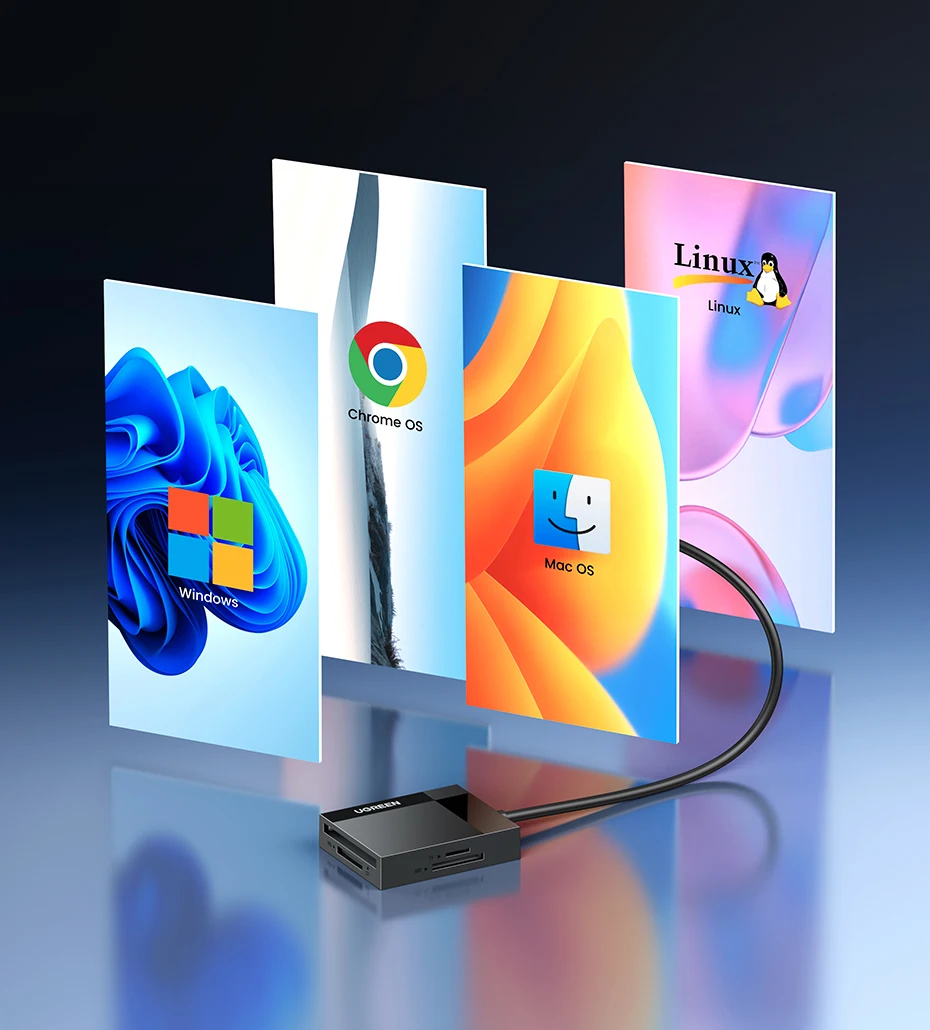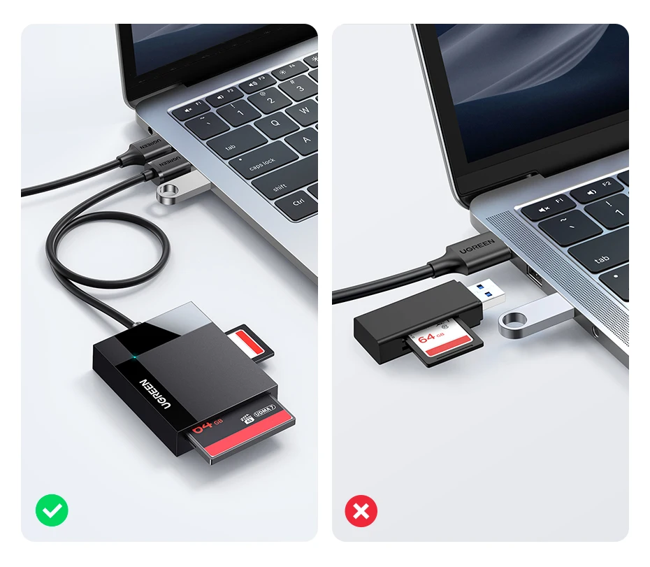 Unlike other single-reading Card Adapters, Ugreen Card Reader enables you to read 4 cards simultaneously and keeps you away from the hassle of constant unplugging and re-plugging.