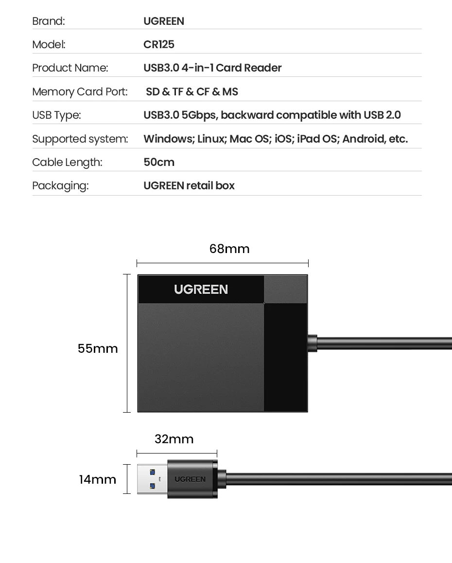 - Product Name: USB3.0 Card Reader / USB-C Card Reader / SD Card Reader / TF Card Reader / CF Card Reader / MS Card Reader / OTG Card Reader Adapter