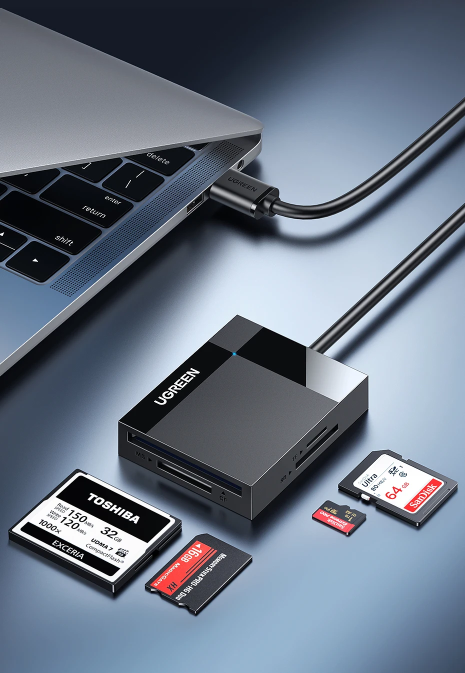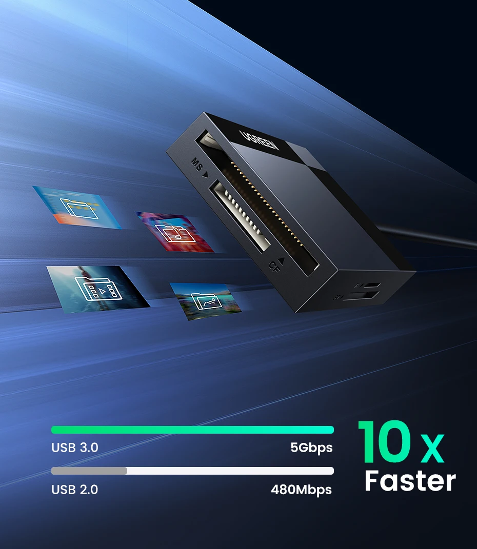 ·SD+TF+CF+MS Card·5Gbps Fast Speed· Plug & Play
