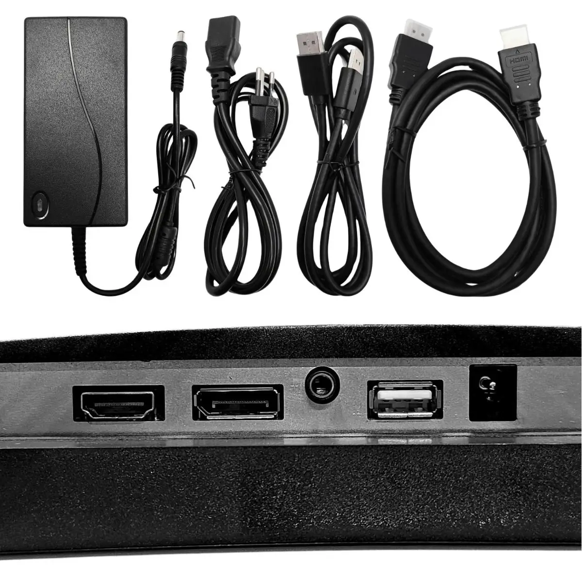 - Conexões: HDMI e DisplayPort (DP)