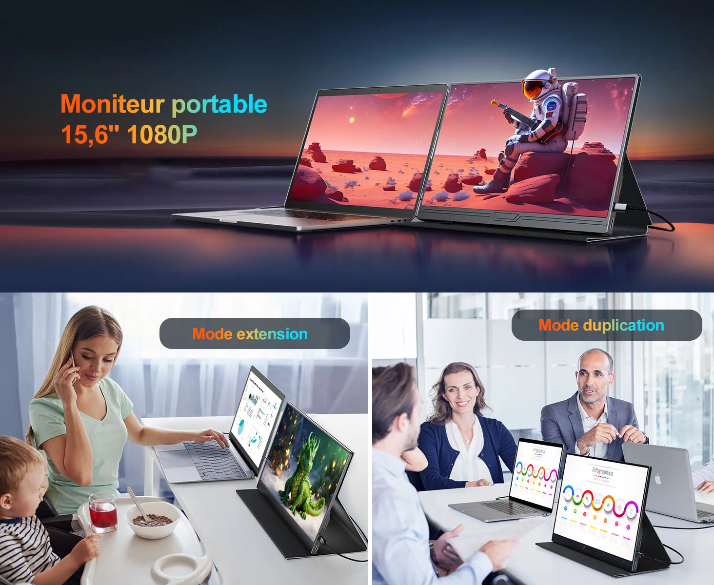 [Mergulhe na maior gama de cores de alta qualidade] O monitor portátil de 15,6″ possui resolução de alta definição 1080P FHD e gama 100% sRGB traz qualidade de imagem nítida, mergulhe em cores vibrantes e detalhes nítidos