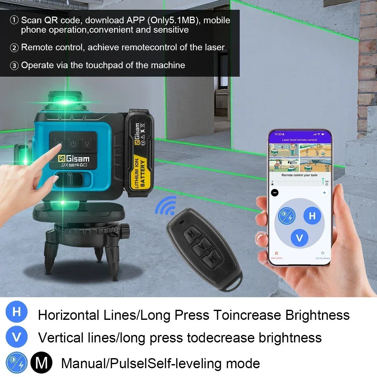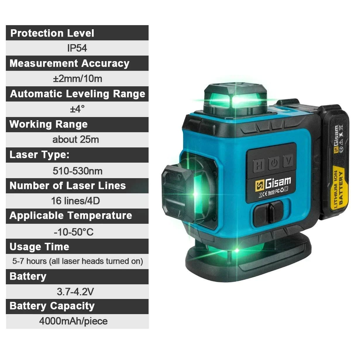 – 4×360°nível de laser 15 modos, adequados para diferentes ocasiões para atender a diferentes necessidades de engenharia.
