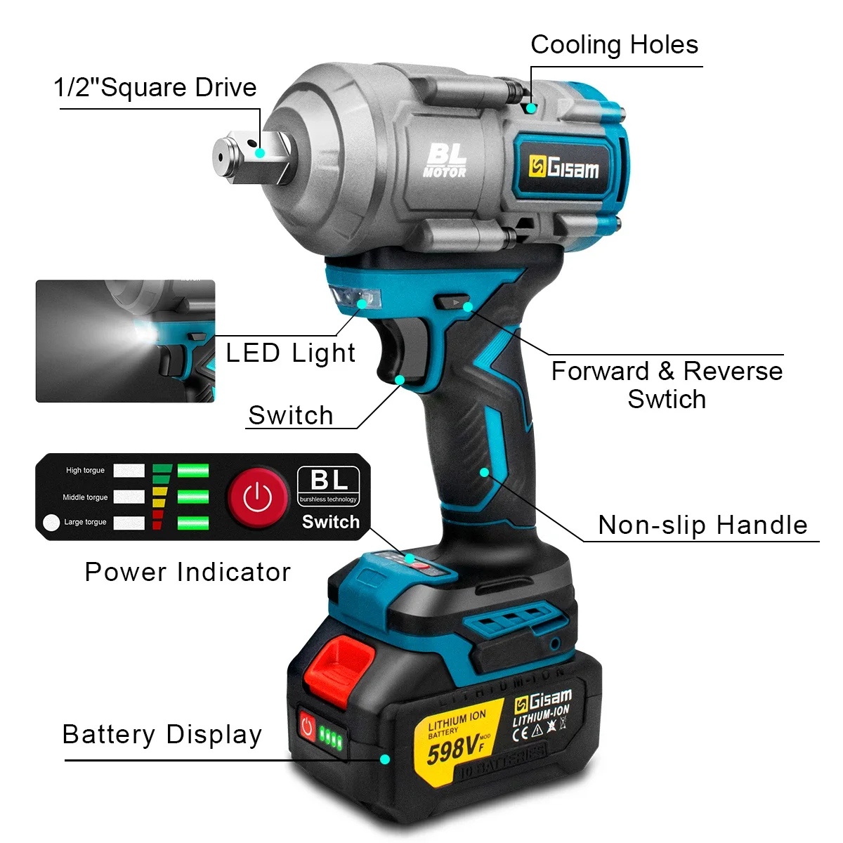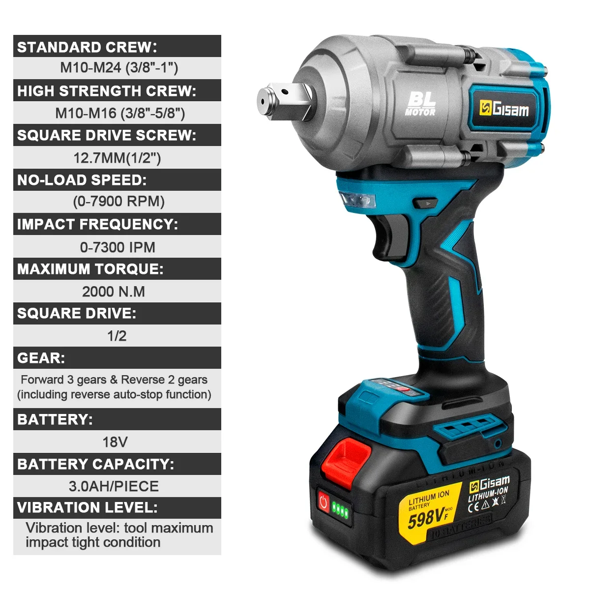 • Número do modelo: Brushless Electric Impact Wrench